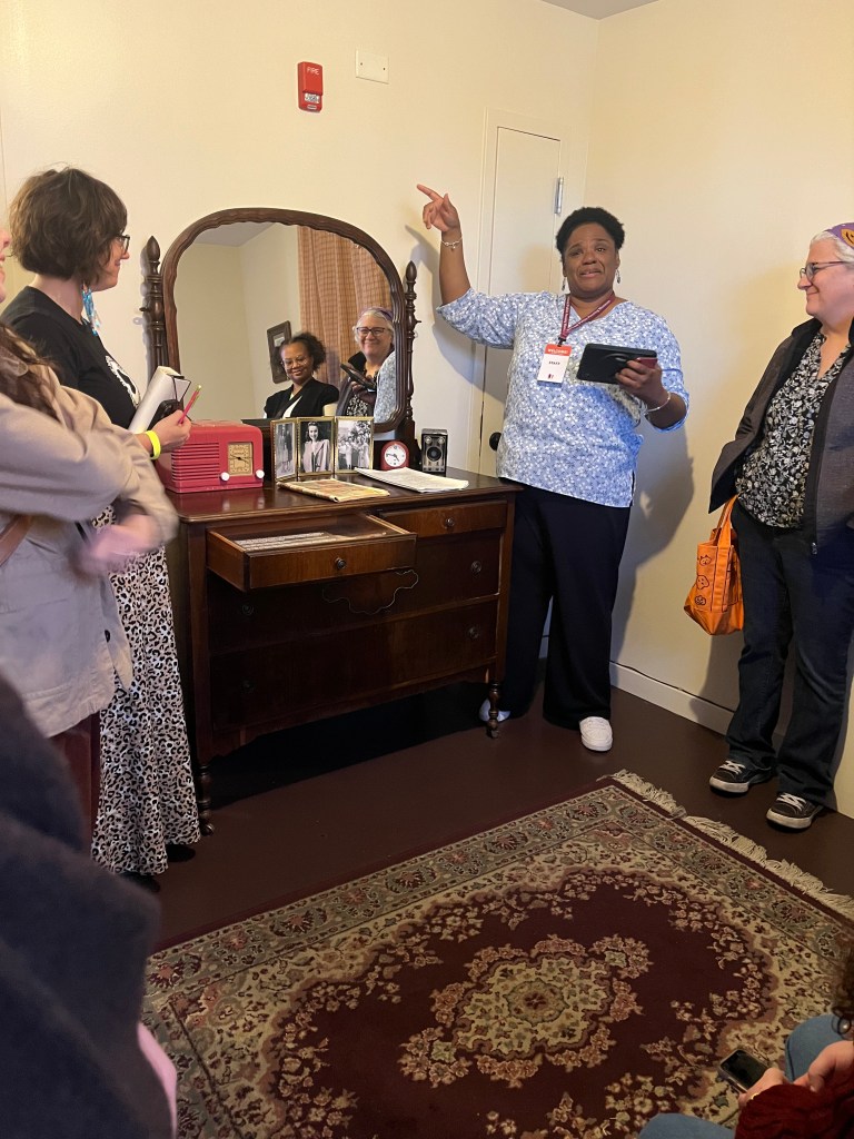 So far, the National Museum of Public Housing had some of the best uses of technology we’ve seen. It was integrated well into the experience and Donya seamlessly moved us through out the space, including splitting us into two groups for the final apartment where we heard stories from a family who had lived and lost in Chicago public housing over shiny new headsets. The connection to the real families who lived in public housing really stood out as truly special. These were real stories of real people and we were surrounded by their real things, even though it was a curated space. It reminded me of my work in living history. Considering the people of the past, no matter how distant, to be another kind of family just like Donya did is something I really want to take with me into my work.